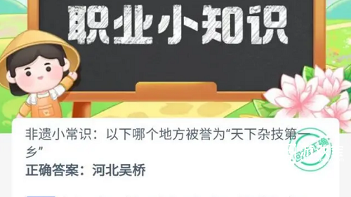 1、个地河北省沧州市吴桥县作为我国杂技技艺的天下发祥地,2006年入选我国首批非物质文化遗产名录。杂技解析被誉为“天下杂技第一乡”。第乡